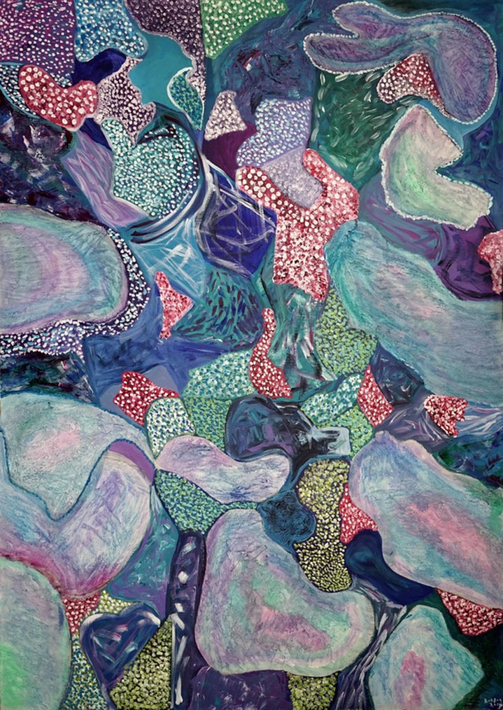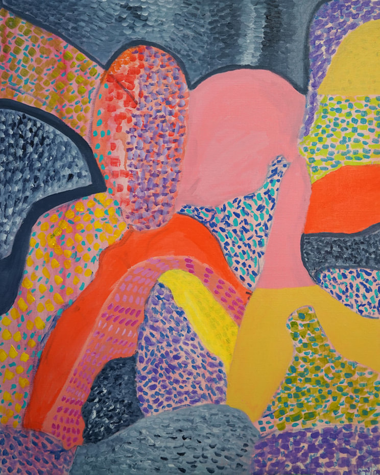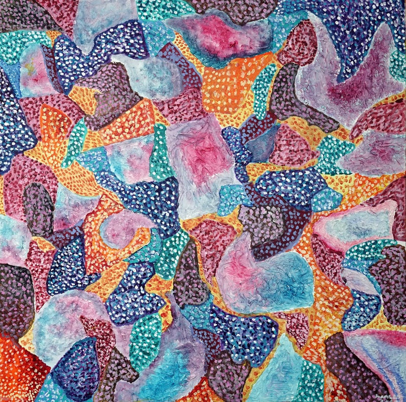 Inspired by  studies that show  colors tend to trigger different parts of emotions in the brain. These paintings are influenced by that idea and represent an amalgamation of different colors into one whole.